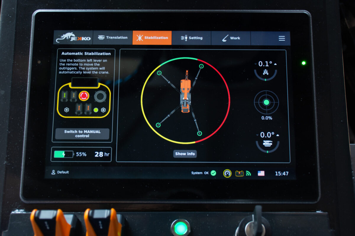 Het grote voordeel en unieke van deze Jekko SPX 328 is het innovatieve display aan de achterzijde van de minihijskraan. Het 10″ display (IP66) geeft live alle informatie van de kraan weer. Van afstempeling, masthoogte, hijscapaciteit, accu status tot hellingshoek en rijsnelheid. Alles overzichtelijk bij de hand. Jekko heeft ervoor gekozen een minihijskraan te maken die voor iedereen toegankelijk is. Daarom zijn instructievideo’s beschikbaar die op het display zijn af te spelen. Al doende leert men. Binnen no-time kent u deze Jekko van binnen en buiten. Geschikt om elk project veilig en snel te voltooien.